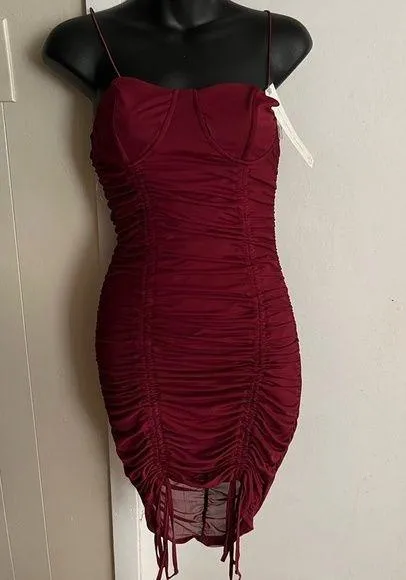 almost FAMOUS Cami Bustier Ruched Dress Juniors' Small Burgundy Spaghetti Strap NWT