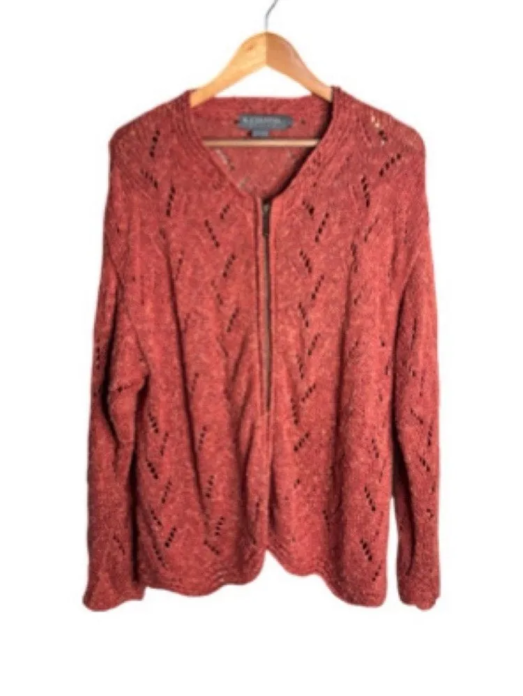 What a vintage beauty! This beautiful salmon pink cardigan is in excellent condition, especially for being made in 1998! Featuring: Open knit Salmon pink Long sleeves Full zip Luxurious linen, cotton and viscose blend. Size large: pit to pit-stretches up to 24”, length-29”. Excellent used condition, no flaws. Open to offers. Same or next day shipping! Vintage 90s grandma coastal year round salmon open knit full zip Luxurious linen