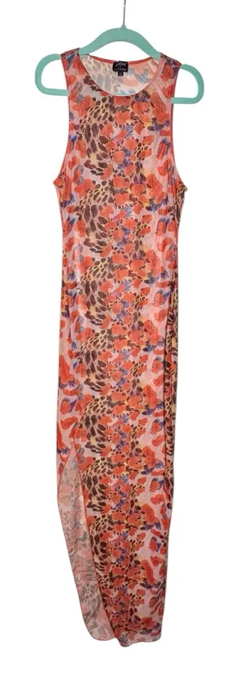 ICON SWIM x CITY GIRLS Gorgeous floral leopard print sheer maxi cover up dress. Size S PTP 14.5” fla... Show more