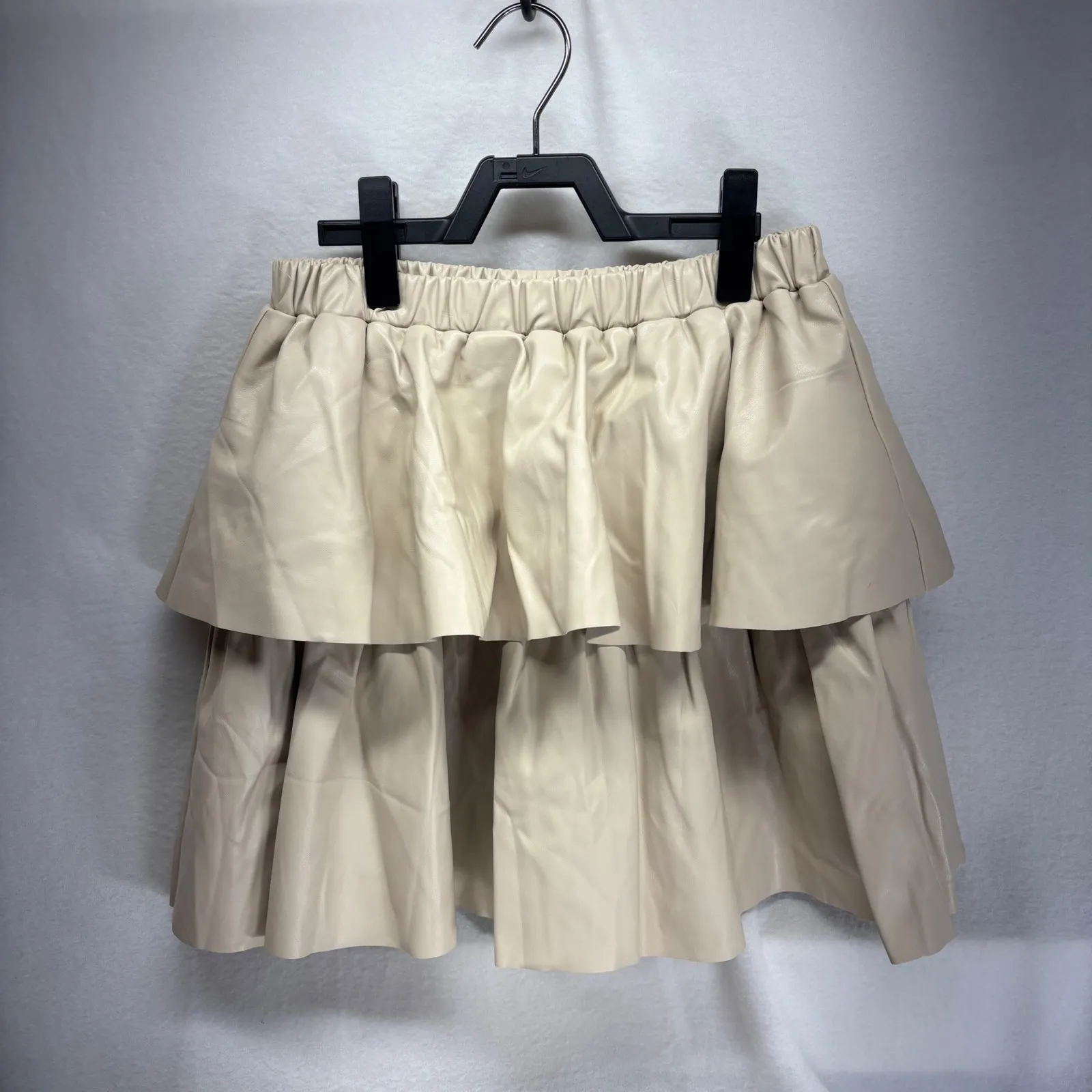 Capture attention with this striking idem ditto mini skirt. Crafted with a luxurious faux leather finish, this skirt features a playful tiered ruffle design that adds movement and texture to your look. The elastic waistband ensures a comfortable and flattering fit, while the built-in shorts offer added convenience and confidence. Imagine turning heads at brunch with friends or owning the dance floor at your next night out. Measurements: • Waist: 26 in • Length: 16 in Type: Skirt Style: Peasant Skirt Length: Short Department: Women Material: Faux Leather Pattern: Solid Accents: Ruffle, Layered Features: Elastic Waist Closure: Pull On Occasion: Casual, Party/Cocktail Keywords: faux leather, mini skirt, ruffle skirt, tiered skirt, elastic waist, designer, fashion, streetwear, party skirt, night out, chic, trendy