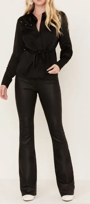 Idyllwind black‎ coated flare pants faux leather women’s size 10 country punk Black - $51 - From Nifty