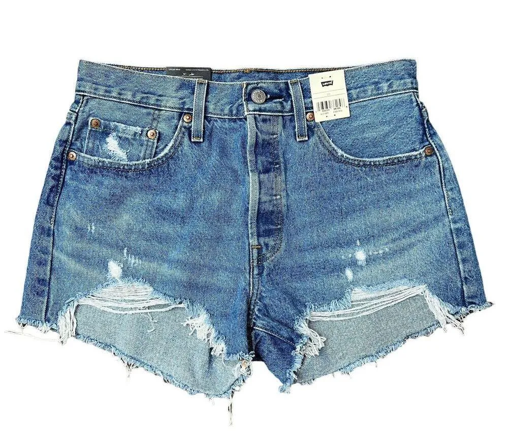 Levi's 501 Sz 29 High Rise Distressed Denim Jeans Shorts Athens Medium Wash NEW. 100% cotton Light... Show more