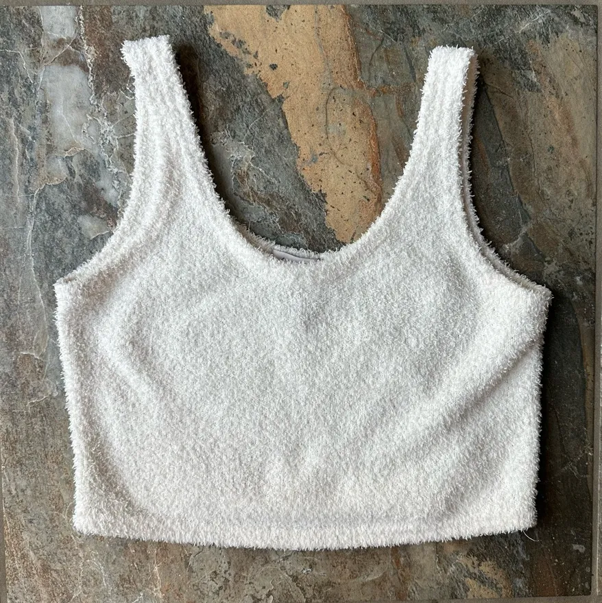 If It Were Me Cozy Knit Crop Tank Top Fuzzy Size Large Ivory White - $15 - From Stephanie