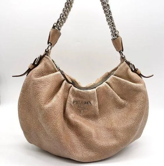 Prada Chain Cervo Lux Deer Skin Leather Cammeo Beige Pink Shoulder Handbag Authentic Vintage BR3828... Show more