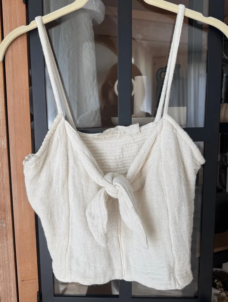 Jen's Pirate Booty cropped top Gauze Cream Tie Front tank knot bow cotton beige Tan Size M - $28 - From Filo