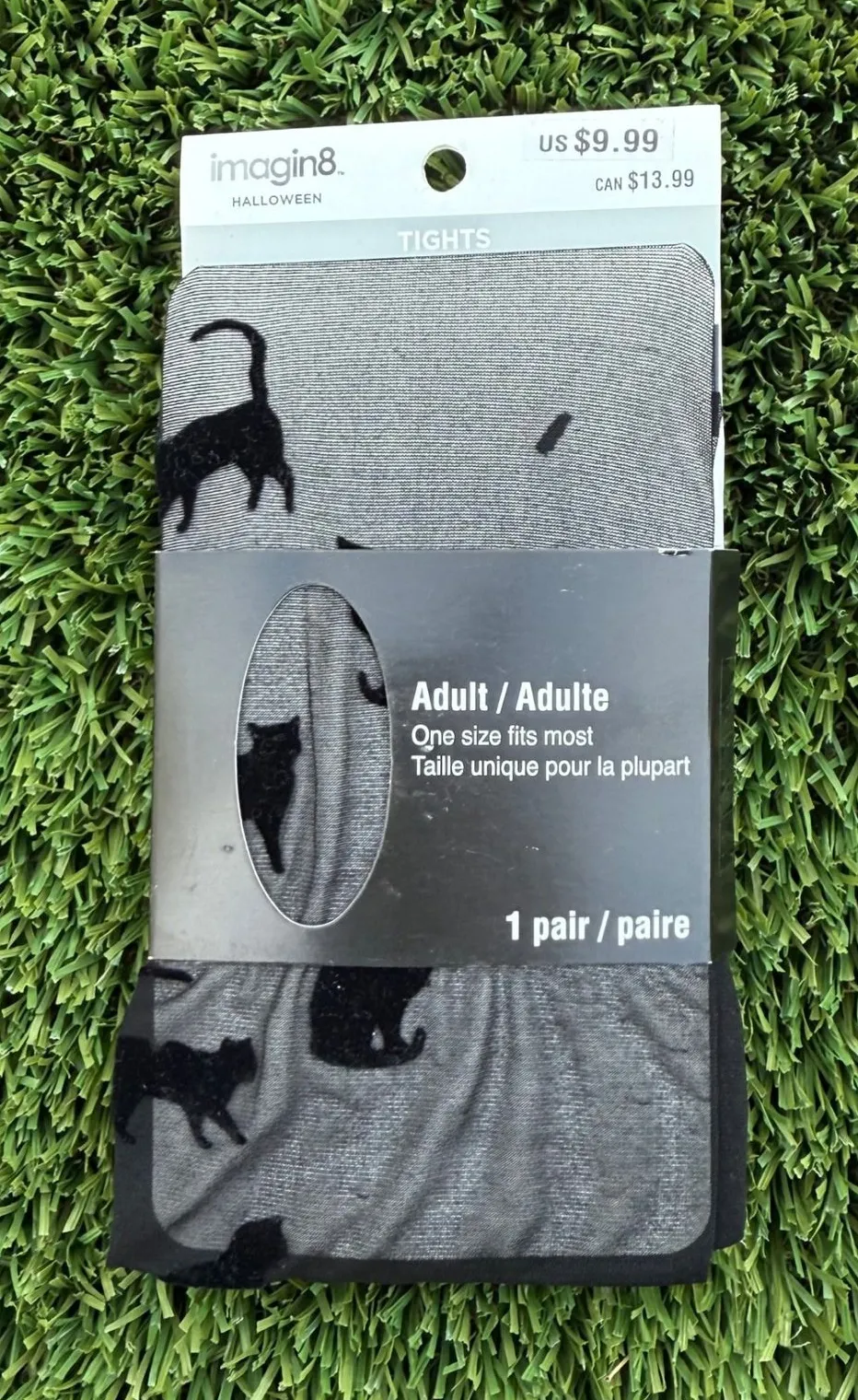 Imagin8 Halloween tights featuring a black cat pattern. Designed for adults and one size fits most. Type: Tights Material: Nylon, Spandex Blend Theme: Bat Features: High Waist Pattern: Animal Print Character: Ninja Toe Style: Full Toe Denier: Less Than 10 denier Department: Women Occasion: Party/Cocktail, Casual, Everyday Season: Fall Number in Pack: 1 Pair Garment Care: Hand Wash Only Country of Origin: China Keywords: halloween, black cat, patterned tights, womens tights, costume accessory, holiday, seasonal, themed, novelty tights, accessorize, fun Item is preowned, effort has been made to ensure all flaws are displayed photos serve as additional description Sizing varies by manufacturer and time period, please see measurements.