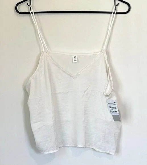 BP by Nordstrom Crop White Satin V-Neck Spaghetti Strap Camisole Tank Top Size: Large Condition: Ne... Show more