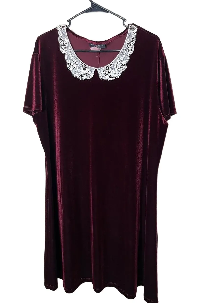 Impressions Workshop Burgundy Velvet Short sleeve Peter Pan Collar Lace collar Dress Large Step bac... Show more