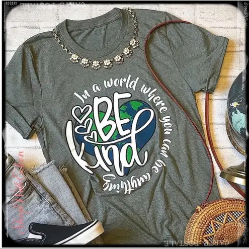 IN A WORLD 🌎 WHERE YOU CAN BE ANYTHING... BE KIND Gray Graphic Tshirt Printed on Bella canvas gray crew neck Unisex tshirt 52% cotton 48% polyester IN A 🌎WHERE YOU CAN BE ANYTHING... BE KIND Tshirt