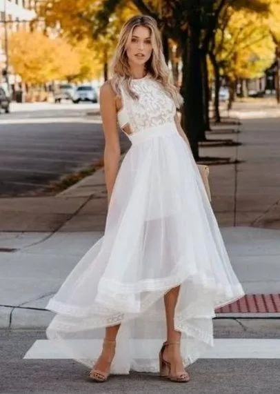 Ina lace top high low tulle skirt with floral lace hem cutout side white size s - $47 - From Sara