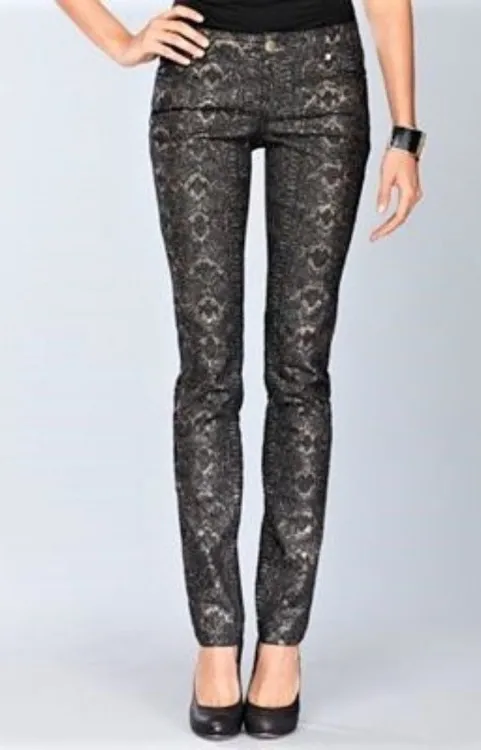INC International Concepts Petite Black Foil Gold Snakeskin Skinny Denim Jeans Like New 5 Pocket Sty... Show more