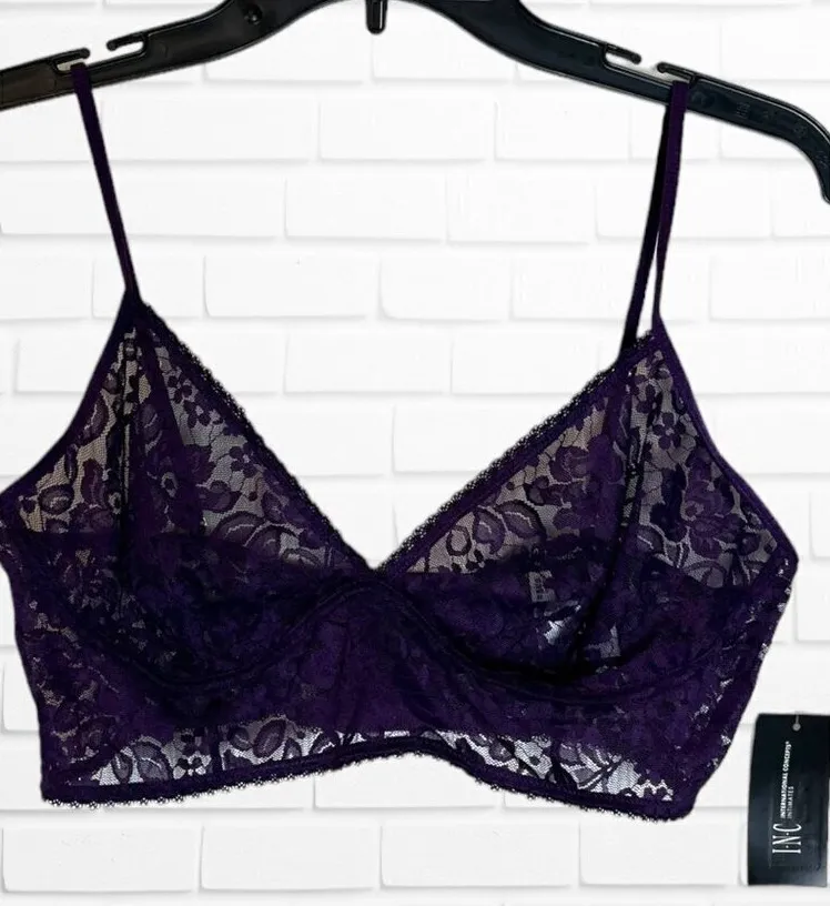 Inc International Concepts Women's L‎ Semi Sheer Mesh Lace Bralette Royal Purple Size L - $18 New With Tags - From Thrifted