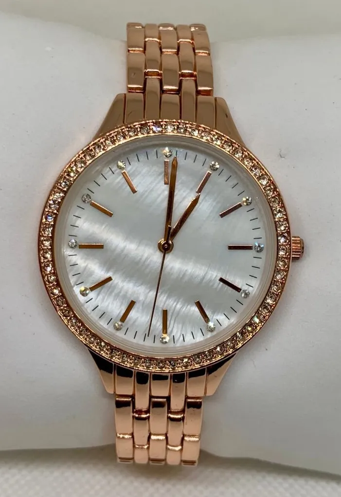 Inc rose gold tone women’s watch 36mm mop dial rhinestones quartz running - $15 - From Watch