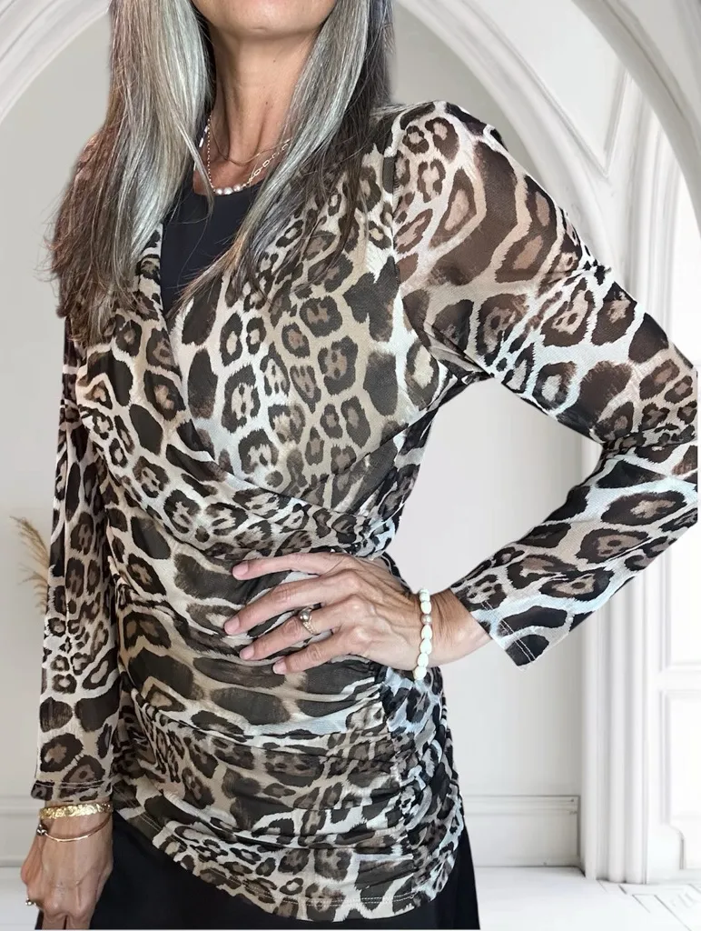 This stylish tunic from International Concepts features a bold leopard print pattern, faux wrapped v-neckline, side ruched, crafted from 100% nylon for both the shell and lining. Made in Vietnam, this XL-sized top measures 27.5" in length and 18" across, offering a comfortable and chic fit. Perfect for adding a touch of wild elegance to your wardrobe, it pairs beautifully with a variety of accessories and bottoms.