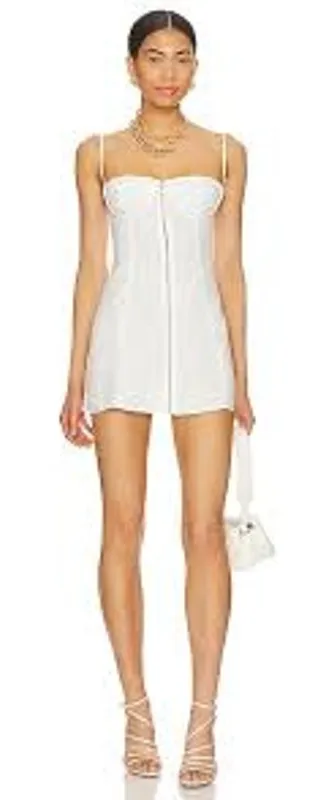 INDAH Karina mini dress From Revolve: 100% linen. Made in Indonesia. Machine wash. Unlined. Front zipper closure. Unpadded underwire cups. Adjustable shoulder straps. Very gently pre-owned Size small/ S tags: revolve, anthropologie, zipper, zip front, corset, beach, vacation, travel, cruise, resort, spring, summer, comfy, sustainable fabric, minimalist, 11126 BOCHOS