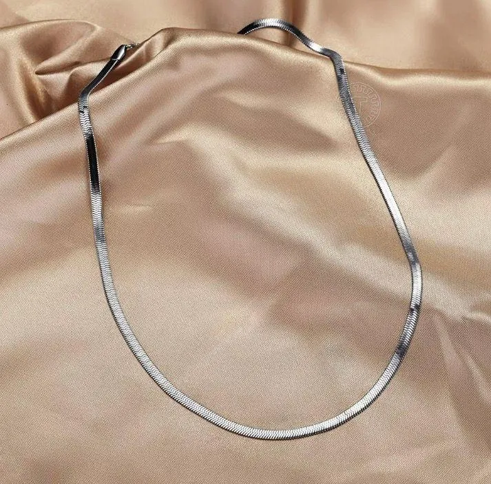 NEW Herringbone Stainless Silver necklace Width: 3mm Length: 16 inch or 18 inch option Amazing versatile herringbone classic chain. This can be worn by women or men. It’s high quality and will NOT tarnish. It’s great for sensitive skin and can be worn in the shower. It won’t turn green and is tarnish free. Solid stainless steel silver chain. This necklace looks great layered with other necklaces or worn by itself. This listing is for one necklace
