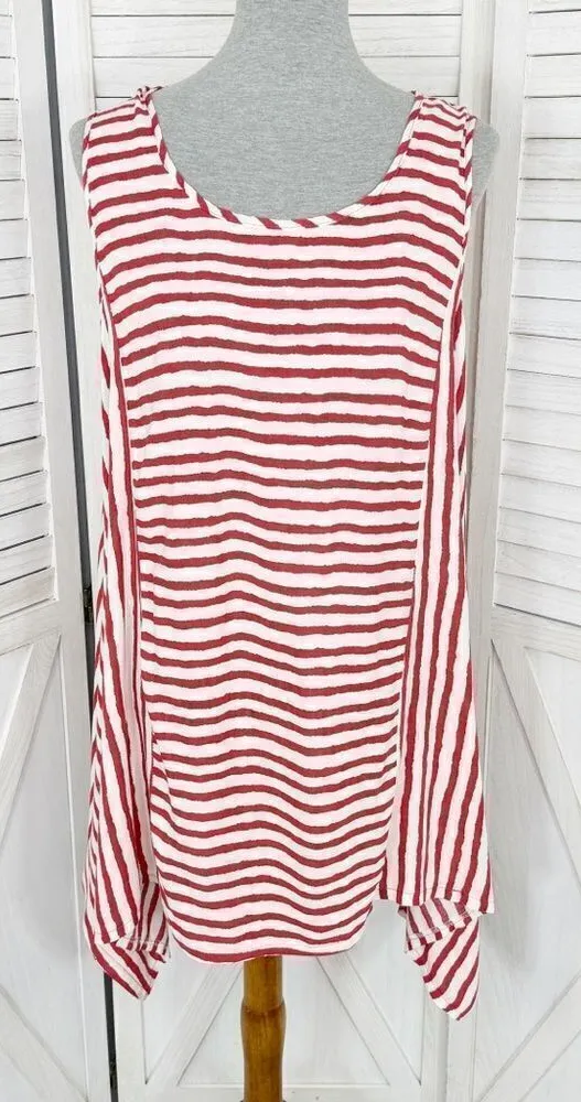India Boutique Striped Beach Swim Cover Dress Size One Size - fits small medium best Red & white stripe Rayon like fabric - polyester Scoop neck Straight hem front & back Handkerchief hem sides with contrasting direction stripes Sleeveless Pullover Just above knee length Lightweight Relaxed fit Excellent preowned condition Armpit to armpit 21” Length shoulder to hem 33” Beach Pool Swim Vacation Travel Cruise Comfy Summer Boho Classic Nautical Preppy #760”