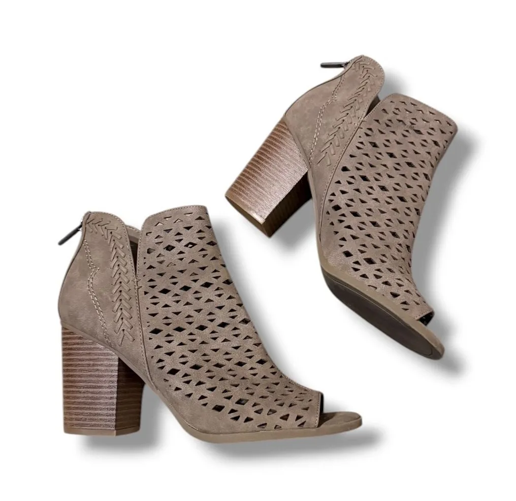 Indigo Rd Peep Toe Block Heel Booties Women's Size 8.5 Taupe Cutout Casual These Indigo Rd peep-toe... Show more