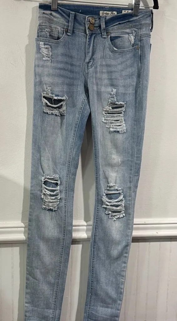 Indigo Rein Jeans Distressed Light Blue denim size 1 skinny stretch - $18 - From Adriana