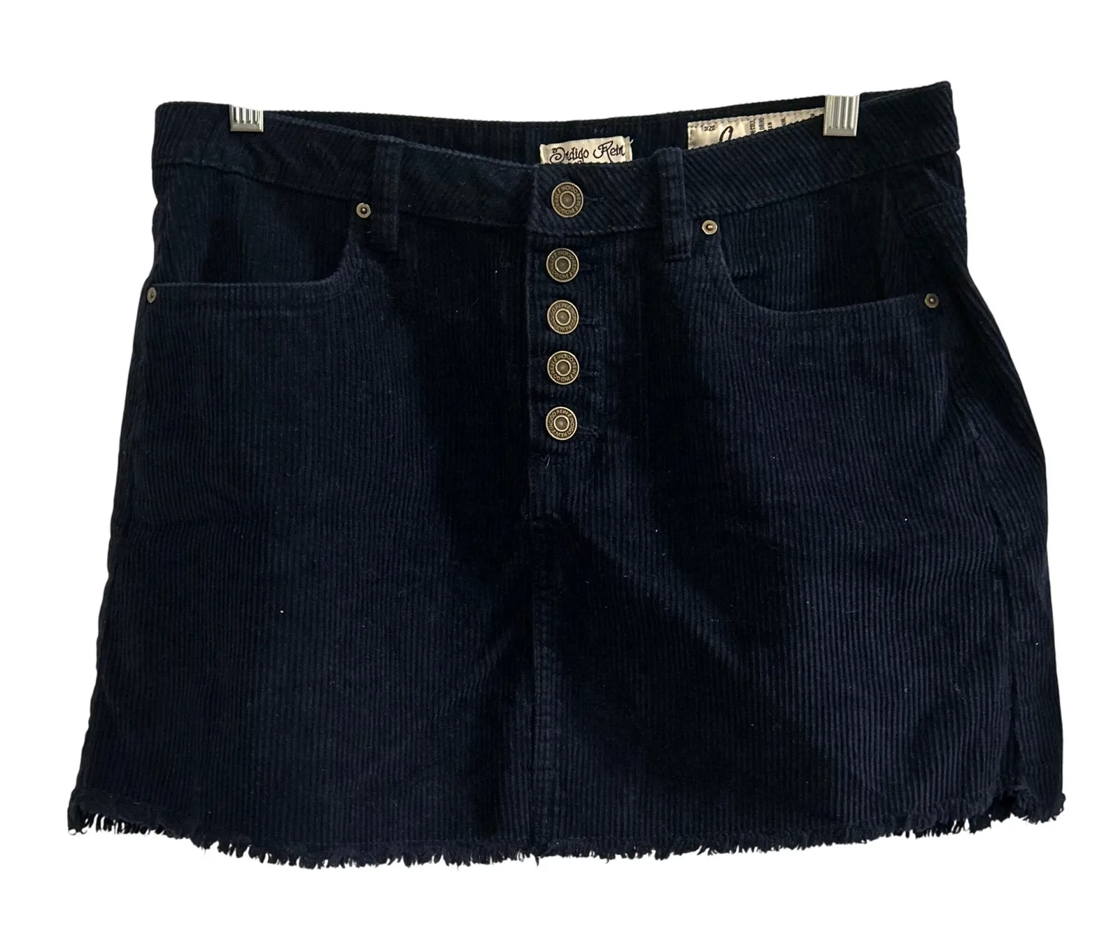 Navy blue corduroy mini skirt from Indigo Rein. This a-line skirt features a classic five-button fly... Show more