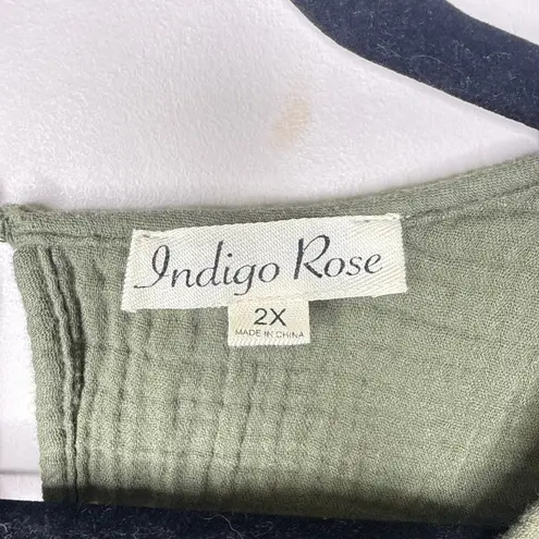 Indigo Rose Gauzy Crinkle Cotton Ruffle Sleeve Tiered Dress Size 2X Color: Olive Green - 100% cotton - one button closure at nap of neck with keyhole - little cap ruffle sleeves APPROX. MEASUREMENTS: *Measurements are taken with item lying flat on table. Pit to pit: 23" Shoulder to hem: 33" * open to reasonable offers * ships next business day * pet-free and smoke-free home * all items washed, unless dry clean only or hand wash label. Please, wash to wear. * see pictures for details. Colors can vary on different devices.