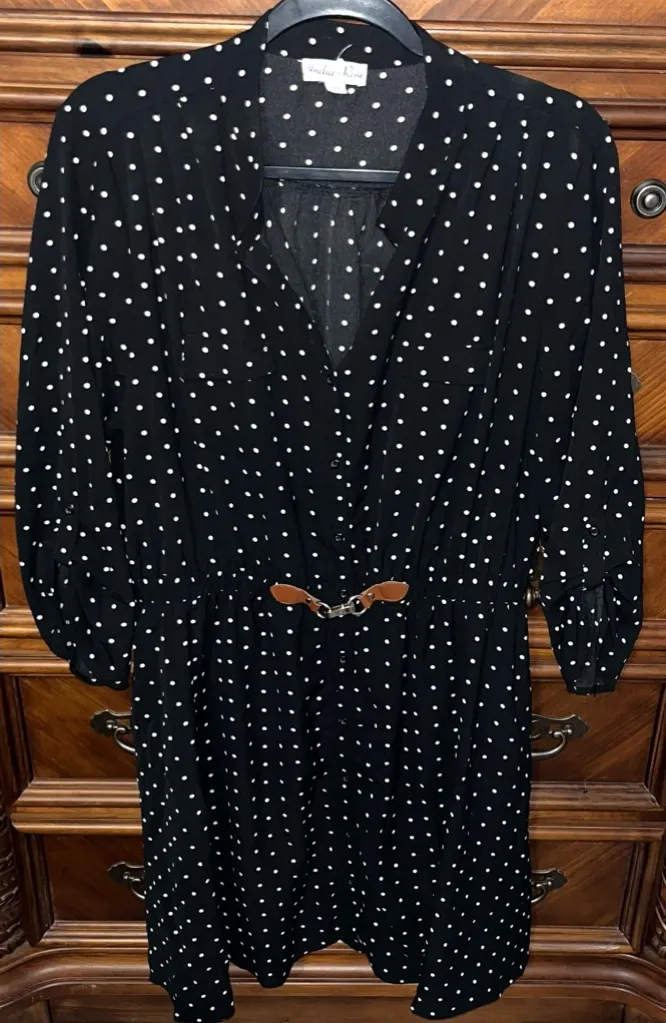 INDIGO ROSE Women’s 3/4 Sleeve Belted Waist Polkadot Mini Dress Black Size 2X - $27 - From Cassandra