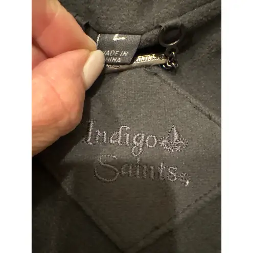 Wrap yourself in cozy sophistication with this Indigo Saints belted fleece coat. The rich gray hue o... Show more