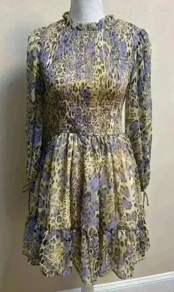 Indikah‎ by Angel Biba dress midi leopard print chiffon smocked A line.Small NWT Purple - $43 New With Tags - From Ghadeer