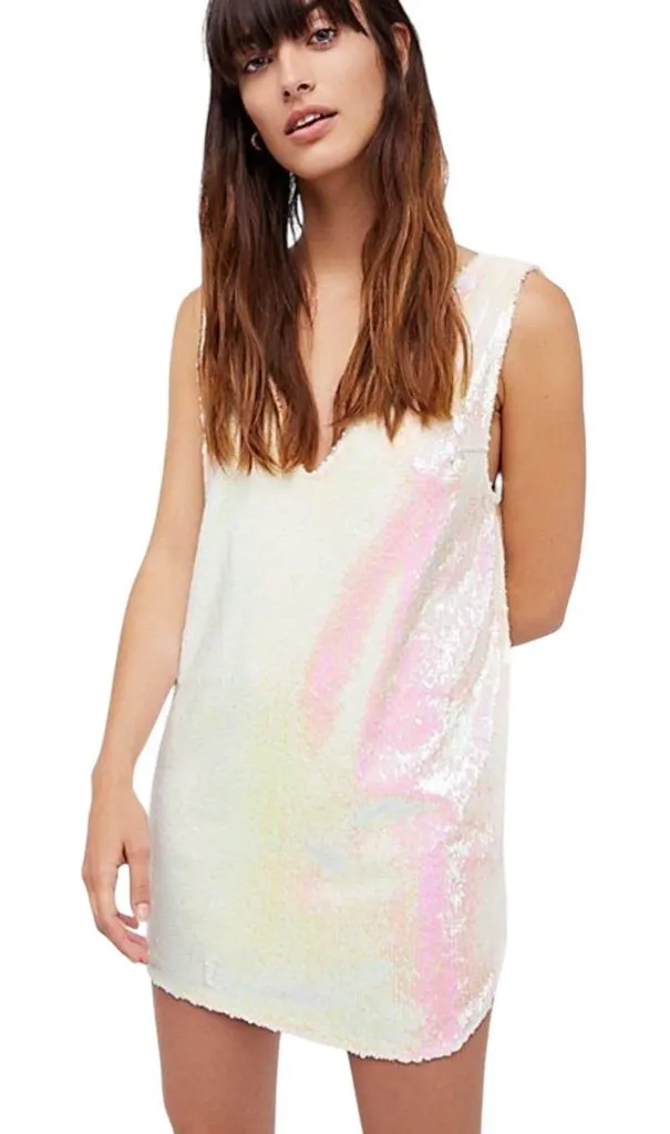 Intimately Free People Cream Pearl Embellished Sequin Shift Slip Dress XS Excellent condition, minor... Show more