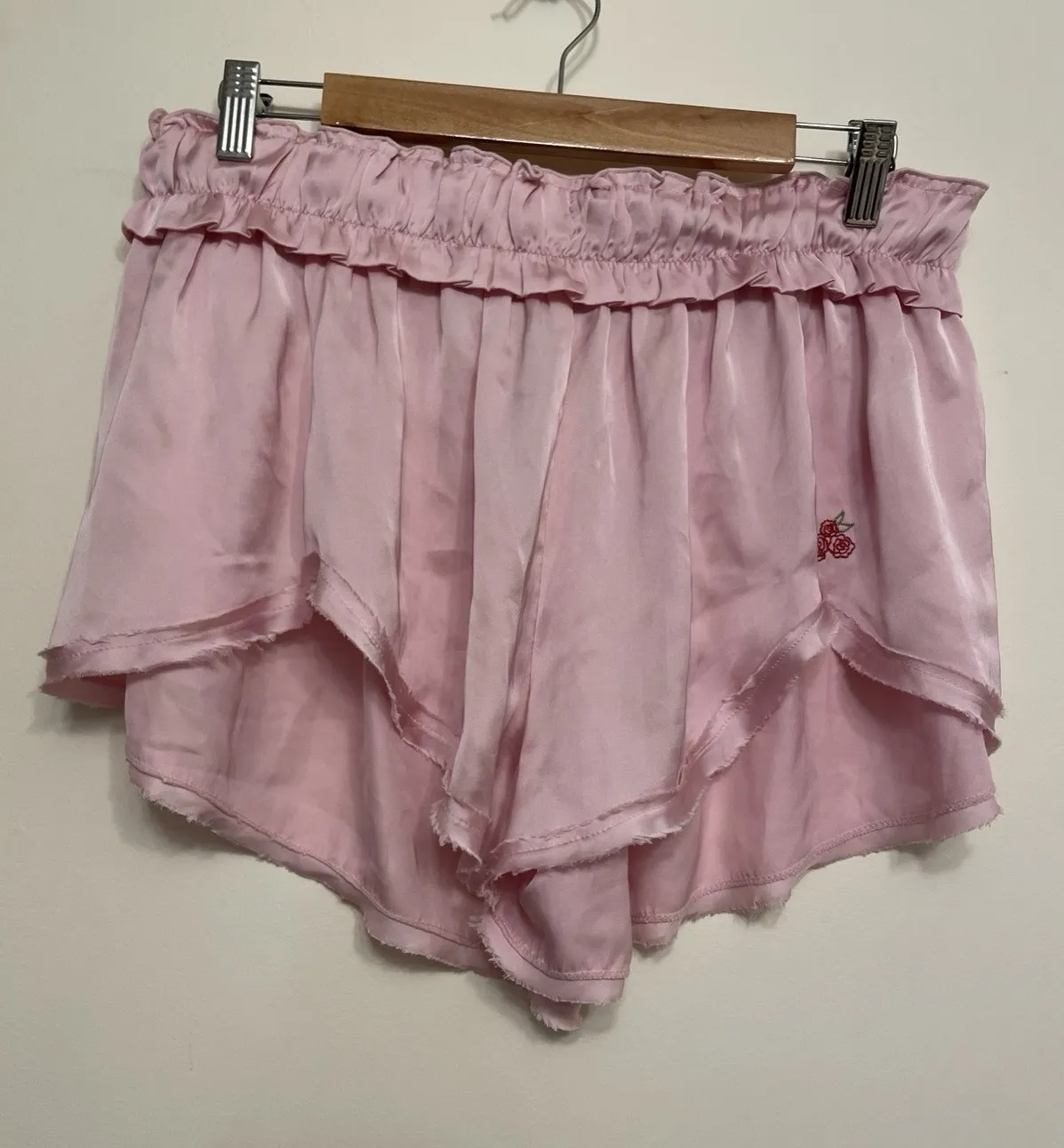 Intimately Free People Pajama Short Women Size Large. Satin polyester material with raw edge. Pink w... Show more