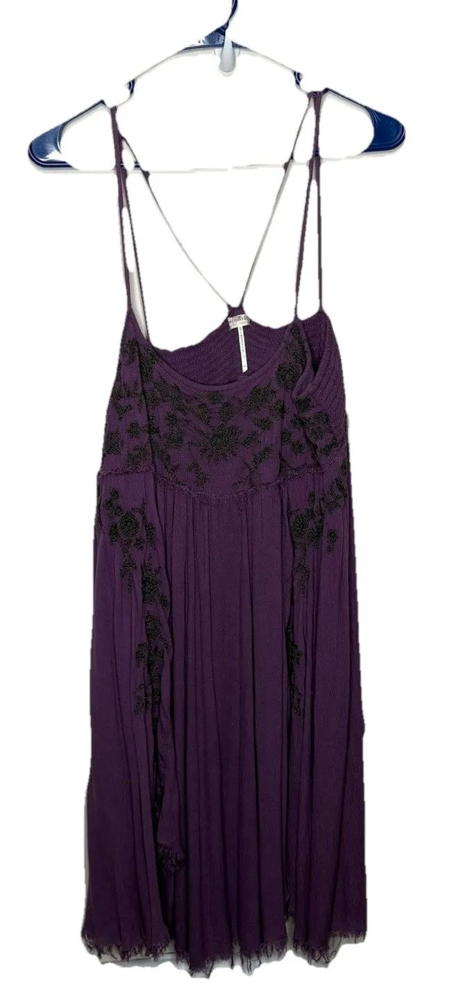 Intimately Free People Purple Black Embroidery Spaghetti Strap Babydoll Dress. Size Medium. Pull ove... Show more