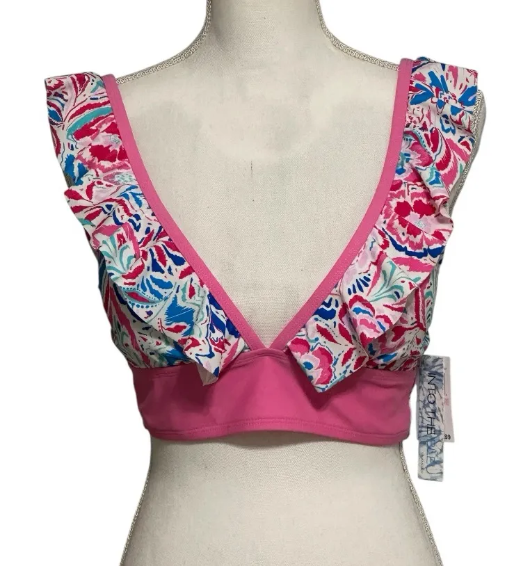 All orders ship next business day! Paisley Pink/Blue Ruffle Swim Top Conditions: new/clean conditi... Show more