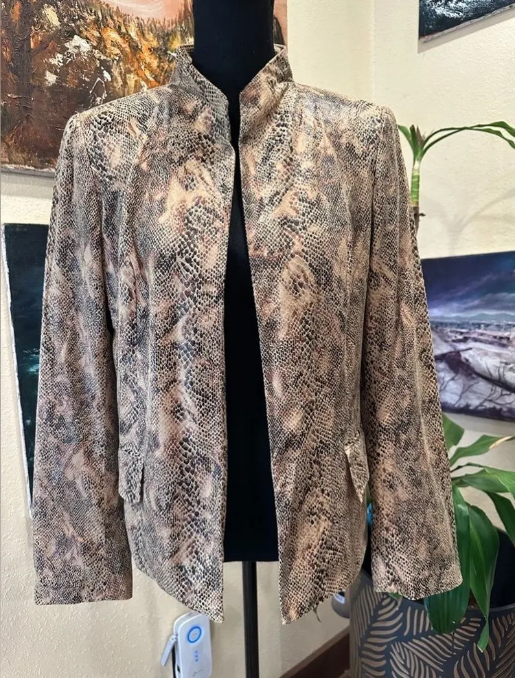 EUC INVESTMENT SNAKE PRINT SOFT BLAZER Korean neck line Brown Size 6 - $60 - From Francesca