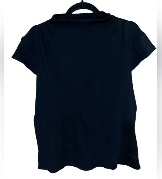 Discover the sleek elegance of this Ann Taylor black 100% cotton blouse, featuring short sleeves and... Show more