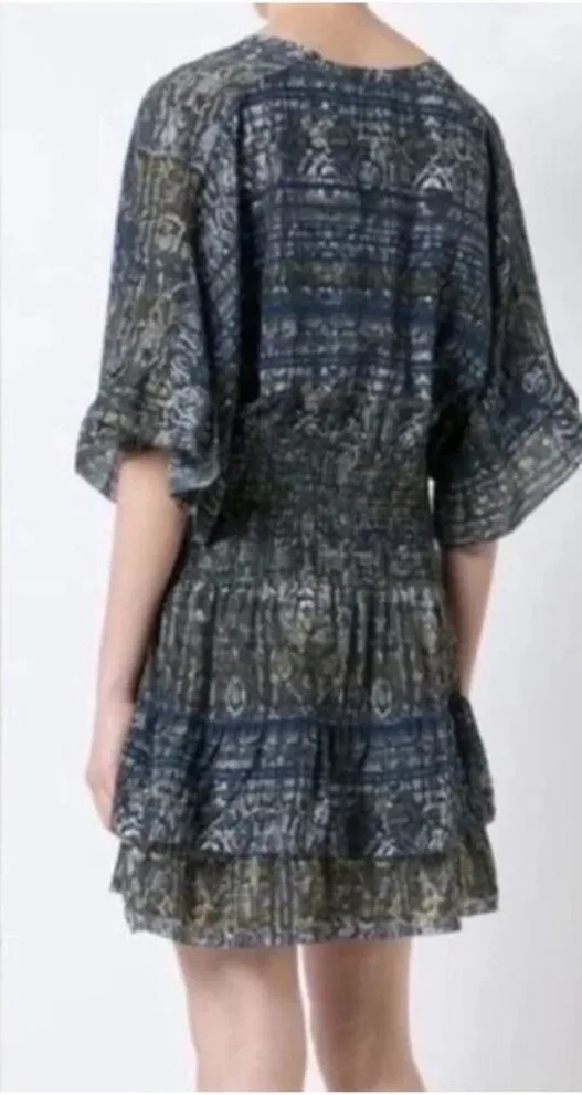 IRO Dress 36 Tulsa Printed Silk Tiered Mini Snake Print Smocked Ruffle Green Size 36 / Small Great c... Show more