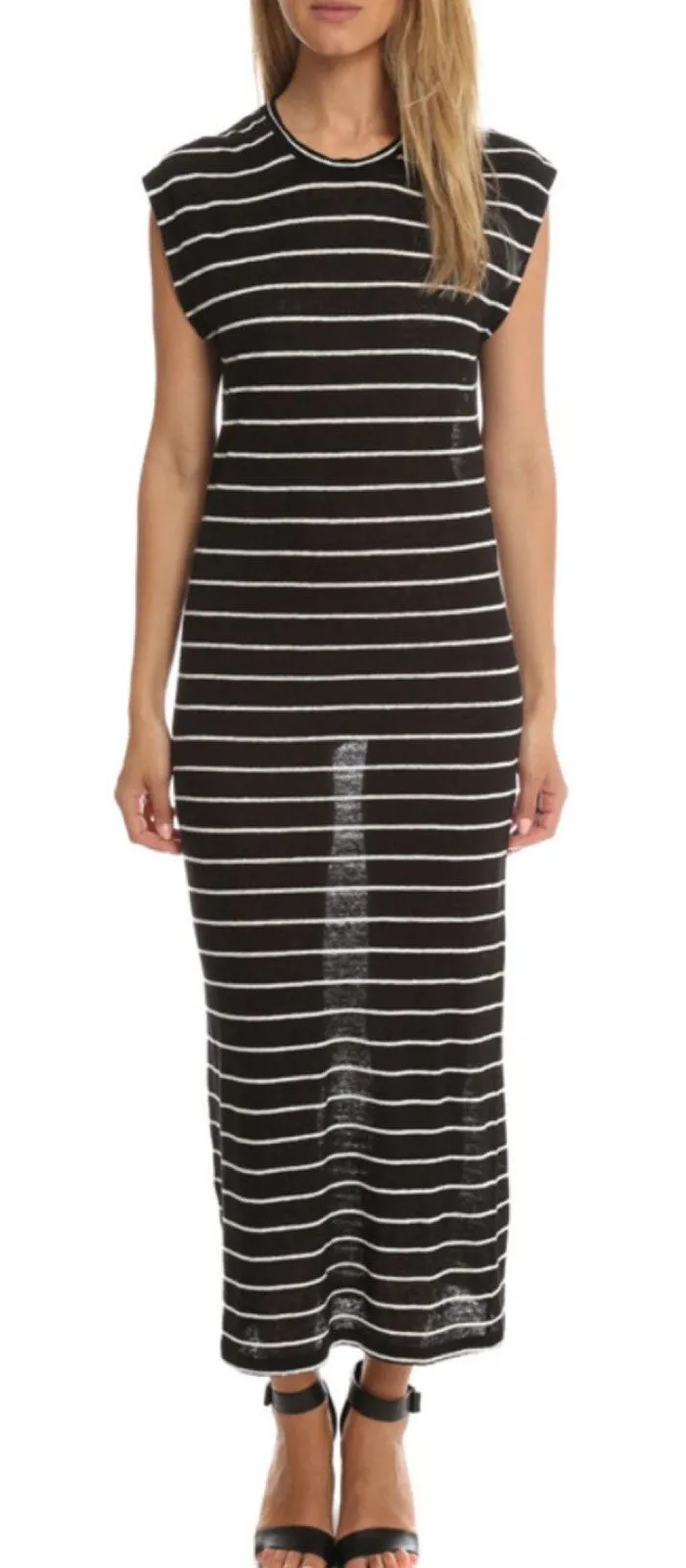Iro Molly Dress in Black Black and ecru stripes continue from top to bottom of this easy, relaxed linen dress by IRO. Cap sleeves and a jewel neck finish an elegant yet casual look. 100% Linen Size Small