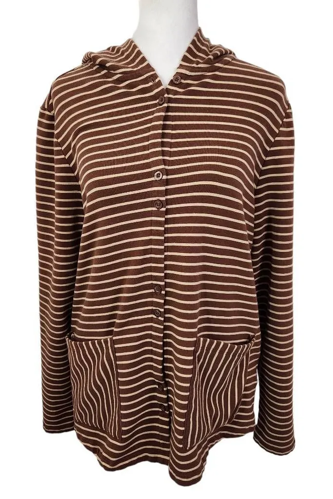 Isaac Mizrahi lightweight hoodie. Features long sleeves, two pockets, and a soft knit fabric. Great... Show more