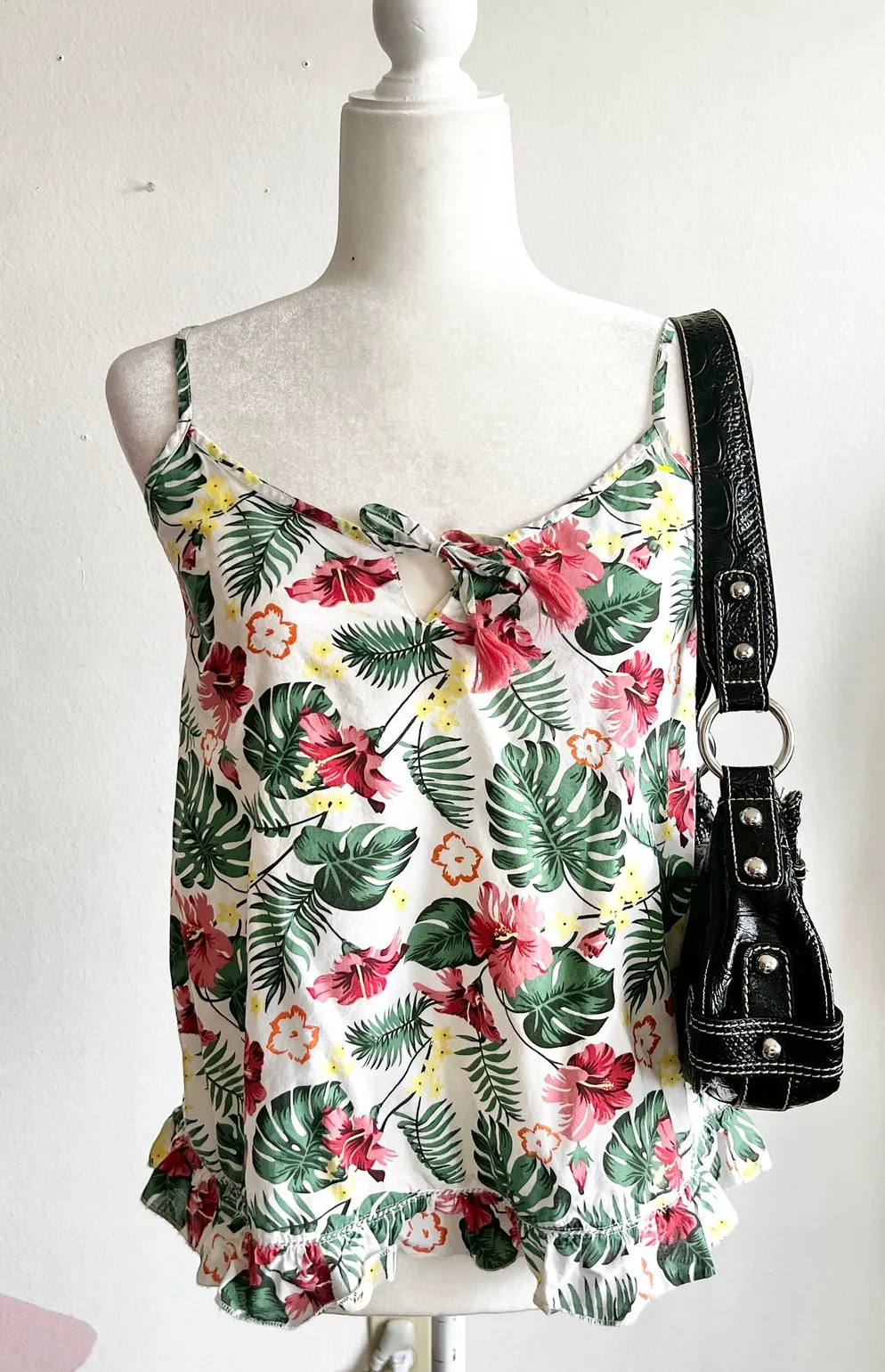 White Tropical Print Tank‎ Top, Coconut Girl Y2K Boho Resortwear Small - $12 - From Kenia