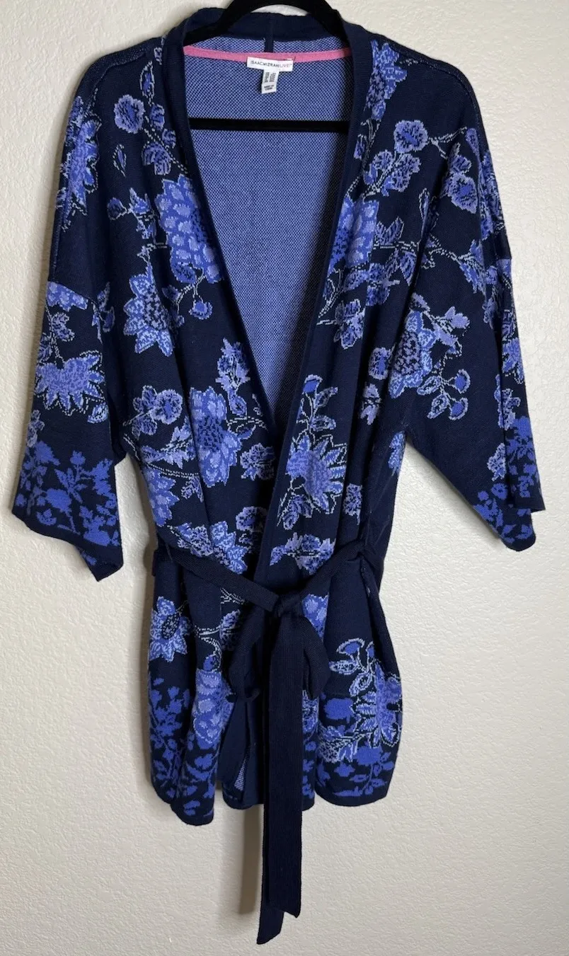 Isaac Mizrahi‎ Womens 2X Jacquard Floral Sweater Cardigan Blue Pockets Belt Size XXL - $25 - From Andrea