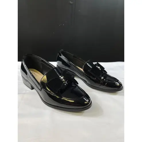 These Isaac Mizrahi loafers combine elegance and style with their sleek patent leather finish. The velvet bow adorned with rhinestones adds a sophisticated touch. They are designed for comfort and style, making them suitable for various settings. Ideal for the modern woman seeking a blend of luxury and practicality. They come in their original box with their own dust bags. SKU 7305 • Velvet bow accents • Rhinestone embellishments • Slip-on design • Durable rubber sole • Cushioned footbed • Rounded toe • 1-inch heel height Size: Womens 7 Condition: Pre-Owned Like New This item has been cleaned, sanitized and deodorized. Although we clean our items additional cleaning may be needed such as spot treatments, etc.