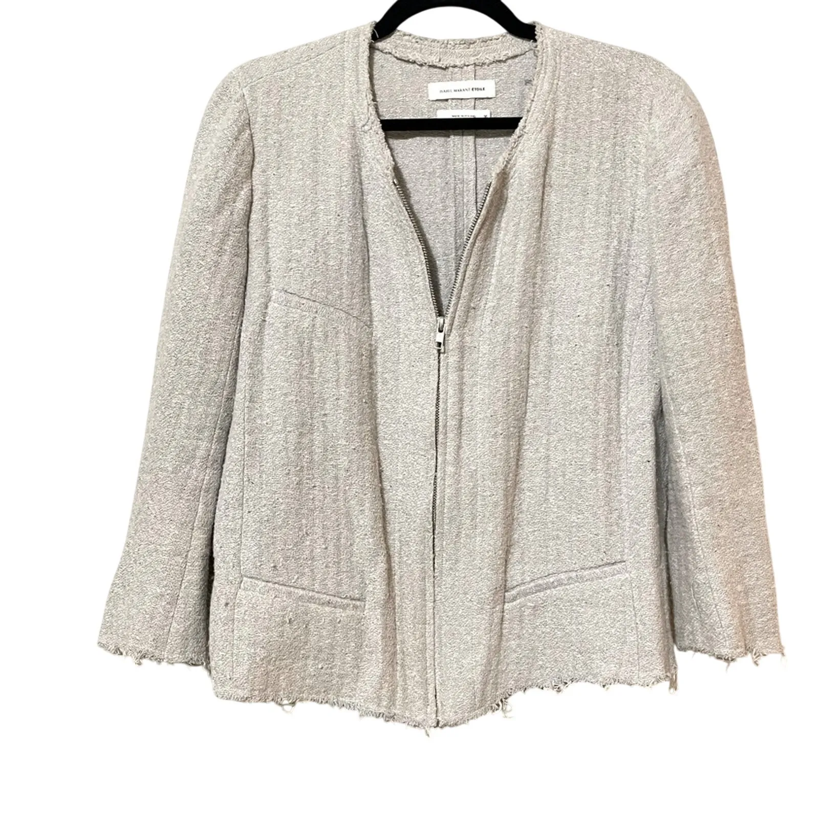 Isabel Marant Etoile Grey Linen Full Zip Frayed Hem Blazer Womens 36 Capsule Gray Size undefined - $90 - From Lisa