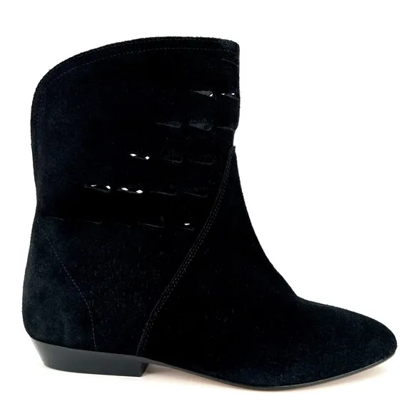ISABEL MARANT -Condition: Brand new item. -All of our items are 100% authentic. -Does not include box. -Size: EU 36. -Color: Black. -Model: Sprati. -This flat-profile pair are made from calf leather suede with perforations and contoured collars. -Block heel measures 1". -Leather lining; leather sole. -Made in Italy. -Retails for $775.00 -Item ships out within 24 hours.
