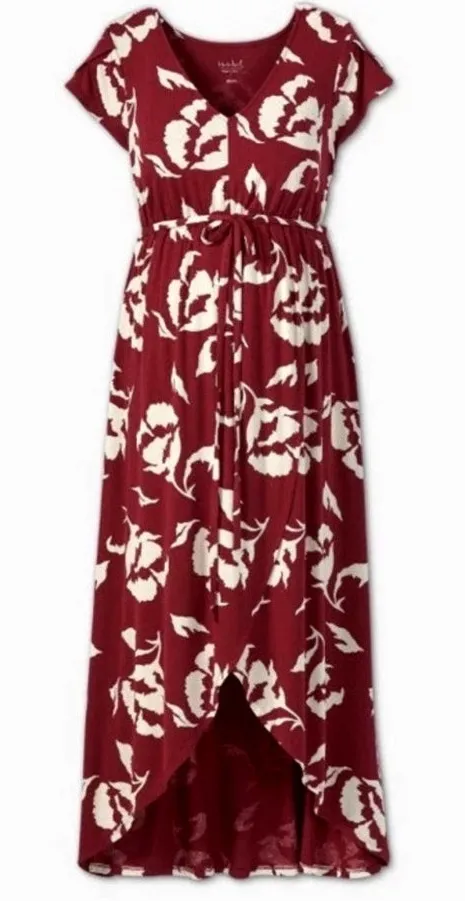 Isabel Maternity cotton dress asymetric hem size small burgundy/cream floral Red - $30 - From Denise