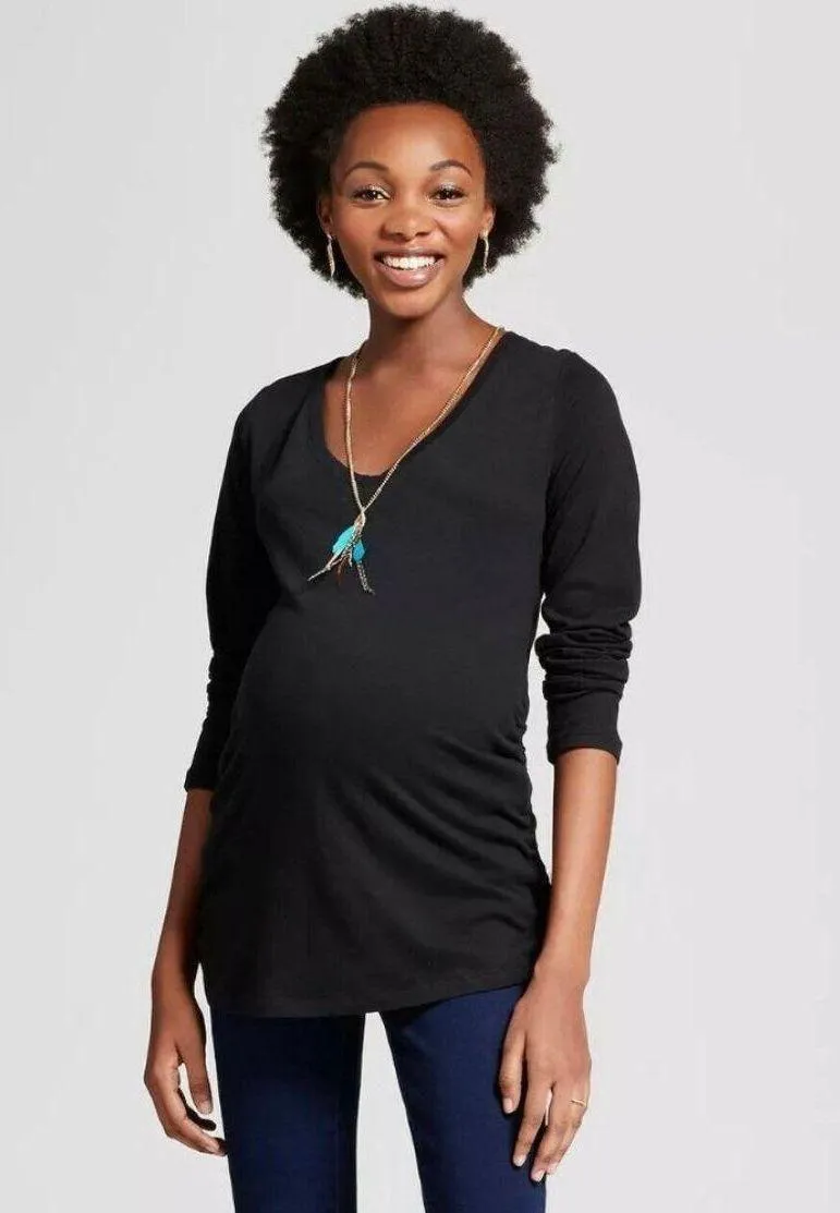 Super soft maternity tee has just the right amount of side shirring to accommodate a growing bump.... Show more