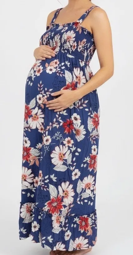 Isabel Maternity maxi dress in a vibrant floral print. This comfortable dress features a flattering smocked bodice and adjustable spaghetti straps. The tiered hem adds a playful touch to this flowy silhouette, perfect for baby showers or casual summer outings. Measurements: • Chest: 17 in • Length: 51 in • Size: XL Style: Sundress, Maxi Dress Length: Long Department: Women Sleeve Length: Sleeveless Pattern: Floral Occasion: Casual Material: Rayon Fabric Type: Rayon Theme: Nature, Tropical, Bohemian Neckline: Sweetheart Season: Summer, Spring Garment Care: Machine Washable Country of Origin: Indonesia Unit Type: Unit Keywords: maternity dress, maxi dress, floral dress, smocked dress, summer dress, casual dress, baby shower, vacation dress, boho dress, maternity fashion, plus size maternity All orders are shipped the same business day or the next business day. Thank you for supporting my small business.