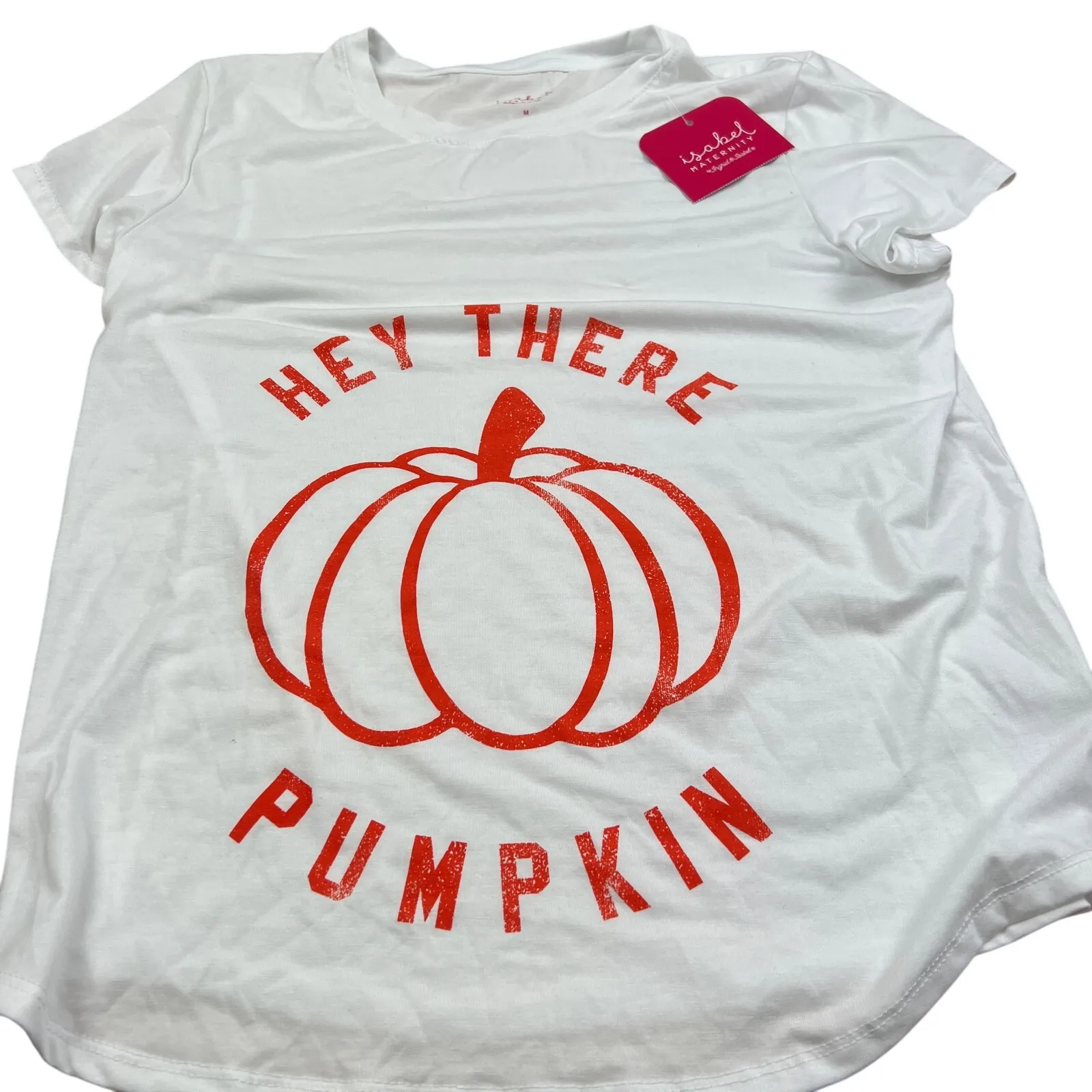 Brand new Isabel Maternity short sleeve white graphic t-shirt - "Hey There Pumpkin" - size medium. Approximate Measurements: 20" P2P, 25" Long Fabric Content: Polyester/Rayon/Spandex Machine Washable