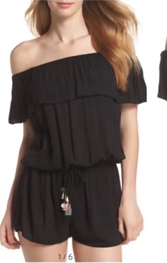 Isabella Rose Besties open back off the shoulder romper Swim Cover Up Sz Small Black - $20 - From Holly