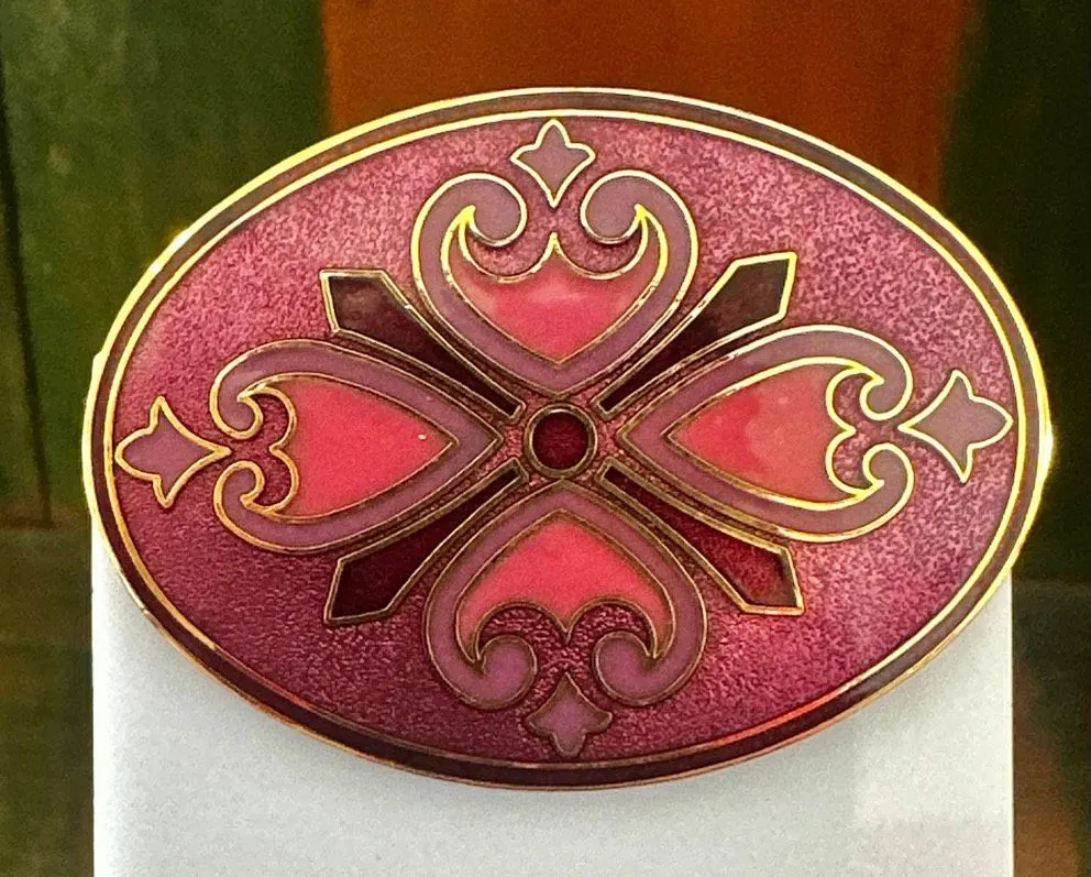 Isle of Shue Enamel Victorian Hearts Brooch – Magenta & Gold Oval Beautiful enamel cloisonné brooc... Show more