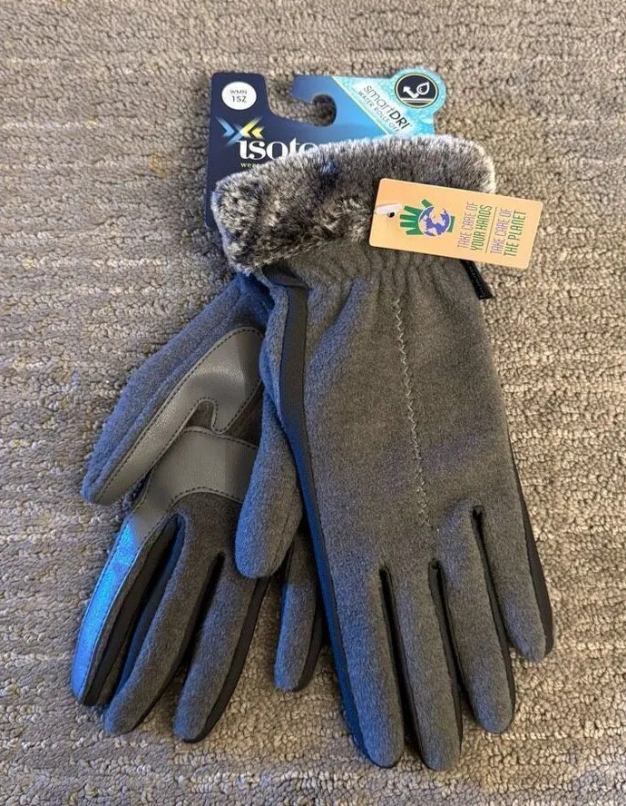 Isotoner Gray Faux Fur Trim Winter Smart Touch Gloves Micro Fleece NWT Brand new with tags, smoke a... Show more