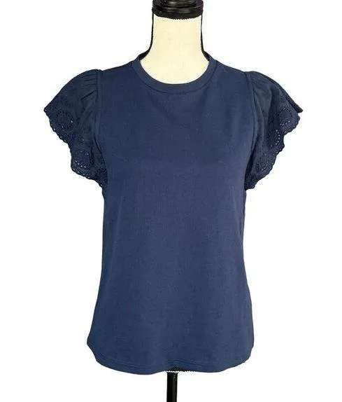 Charter Club Small Sweatshirt Top * Flutter Cap Sleeves (Eyelet Fabric) * Stretch * Crew Neck *... Show more
